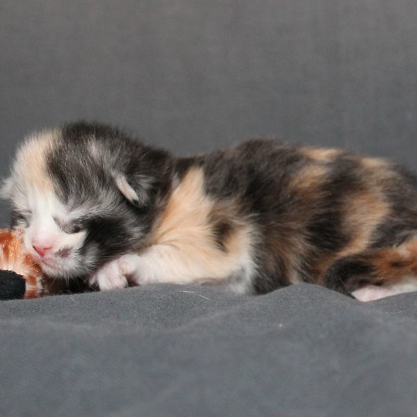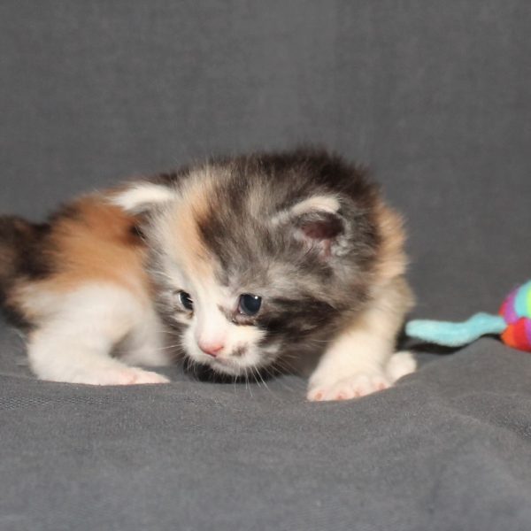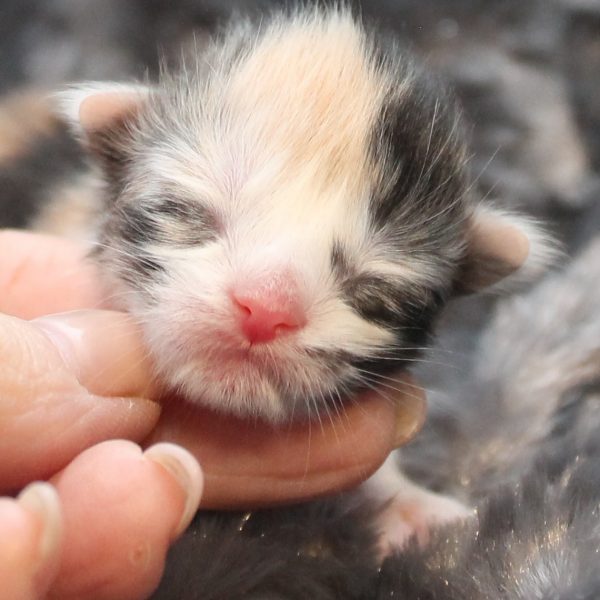 Kleur/tekening: Black/ Blue Silver Tortie tabby with White