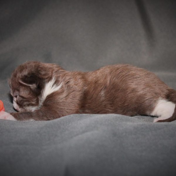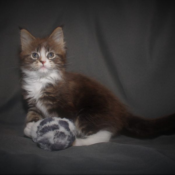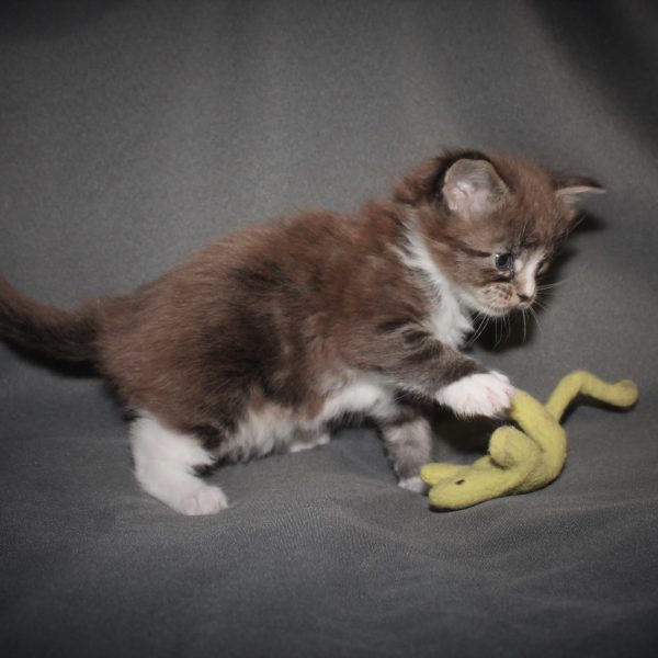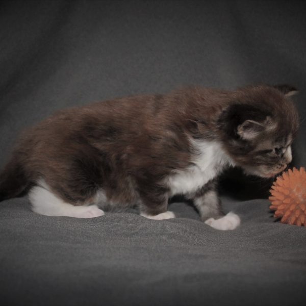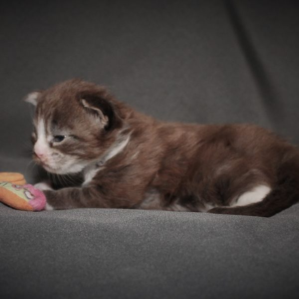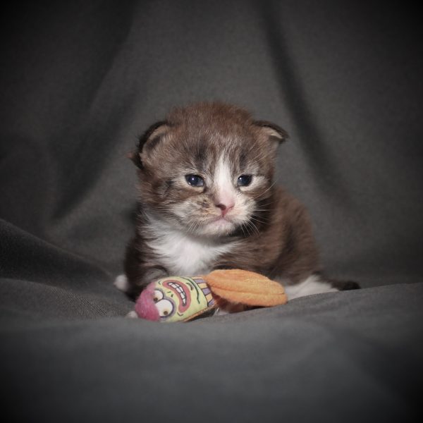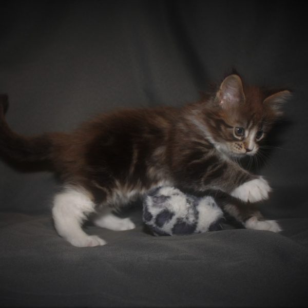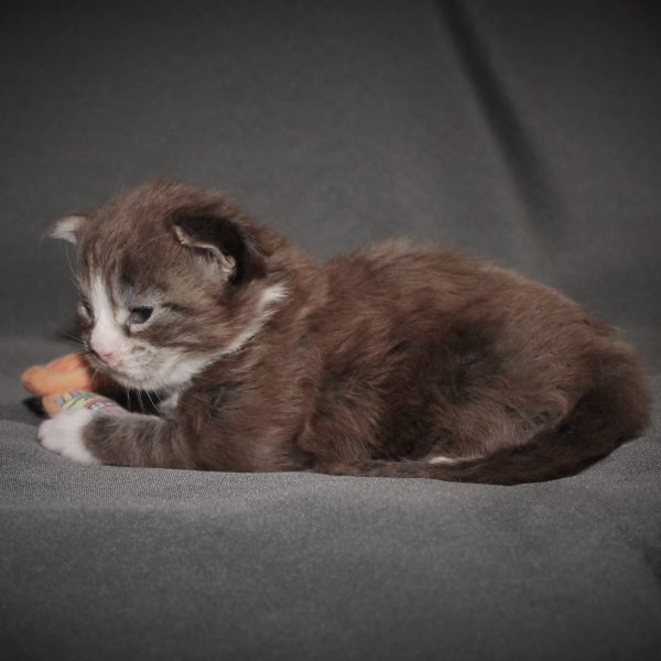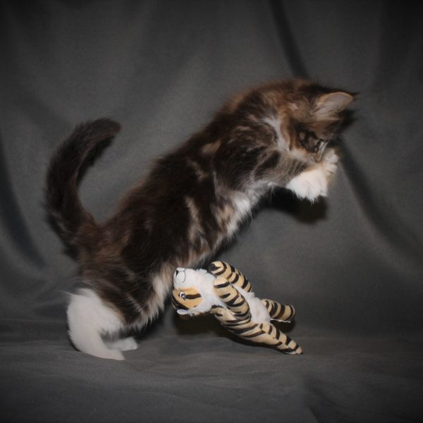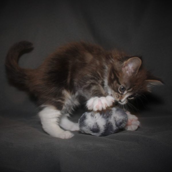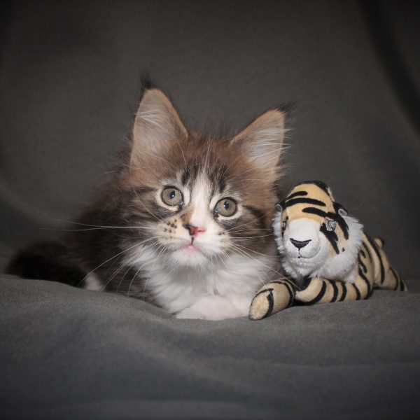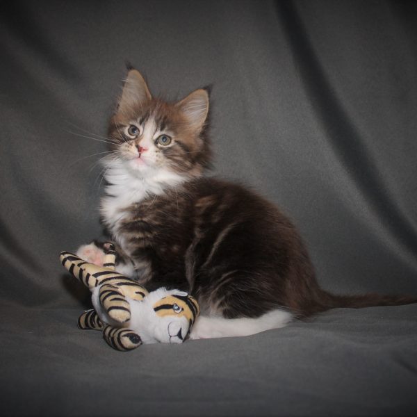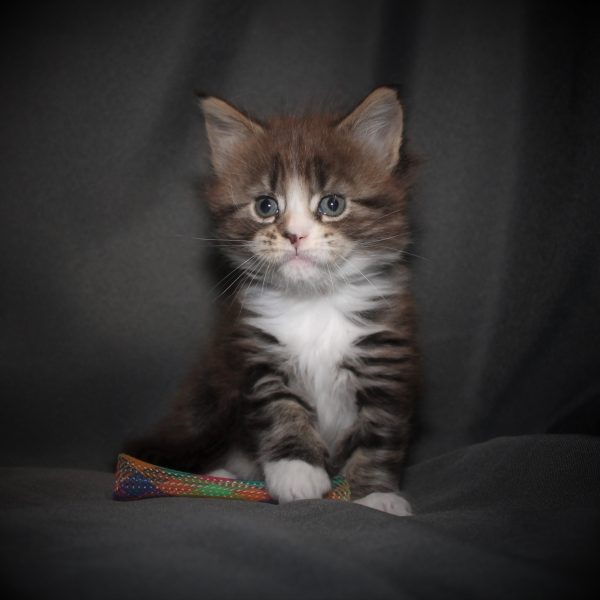 Kleur/tekening: Black tabby Blotched with White