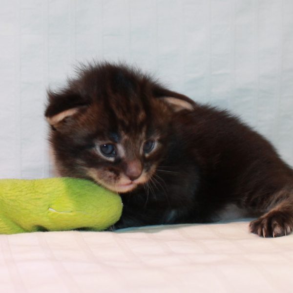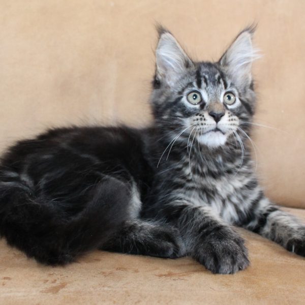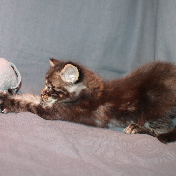 Kleur/tekening: Black tabby with White