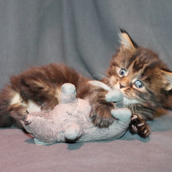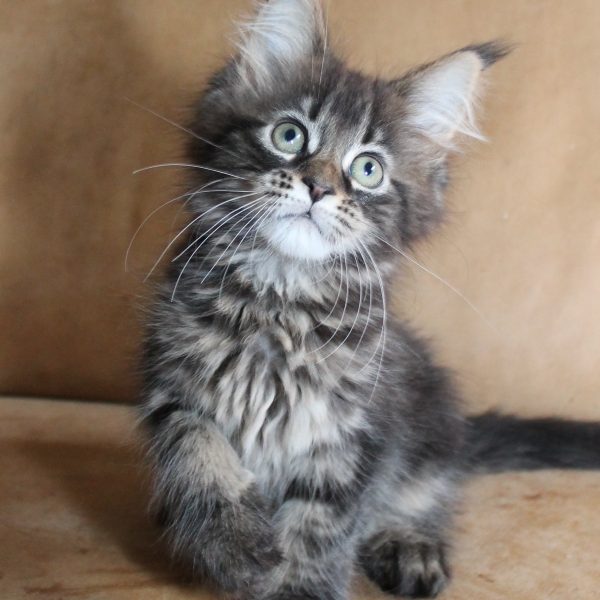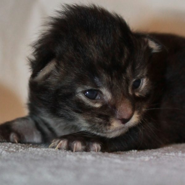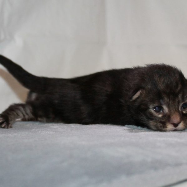 Kleur/tekening: Black tabby with White